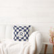 Sur le devant de la marine et crème à damiers coussin motif, il y a un cercle beige avec un monogramme personnalisé au centre. Ajoutez votre initiale dans la barre latérale. Des carrés alternatifs bleu marine et blanc cassé forment le motif géométrique audacieux derrière. Pour en savoir plus À damiers Marine et Cream, cliquez sur le lien "Rocklawn Arts".