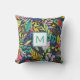 Coussin Monogramme Turquoise lumineux Art moderne Feuille