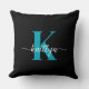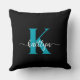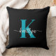 Ce simple et élégant oreiller noir 20 pouces jettent avec votre prénom dans une police de script tendance en blanc et votre première initiale dans une police casquette moderne en turquoise est parfait pour vous. C'est design, tendance et pourtant très classique. Il aura l'air fabuleux dans votre chambre, salon, salle d'observation, elle remise.