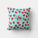 Coussin monogrammed motif de coeur rouge sur bleu turquois