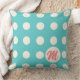 Coussin Monogrammes Pois en blanc doux sur Turquoise