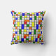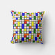 Cet oreiller de lancer a un design moderne du milieu du siècle d'une grille avec des carrés et rectangles colorés. Il a également des cercles colorés placés sur les lignes de grille. Si vous aimez le design mais préférez différentes couleurs, envoyez-moi un message.