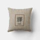 Coussin Mot et texte chinois zen sur imprimé burap beige