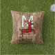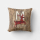 Coussin de patio extérieur personnalisé avec motif à carreaux rouge et noir du clan Buffalo Lumberjack avec image de silhouette de cerf aux bois sur un fond texturé contemporain en bois. Avec la possibilité de personnaliser ou de personnaliser avec le monogramme du nom de famille de votre choix.
