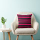 Cette coussin en coton foncé propose une alternance de motif rayé horizontal rose et noir.