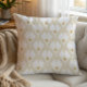 Améliorez votre décoration intérieure avec notre luxueux design d'oreiller, mettant en valeur un motif géométrique Art Déco ton or sophistiqué sur un fond blanc polyvalent. Élevez votre espace de vie avec cet ajout rétro et intemporel.