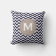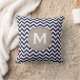 Coussin Motif blanc de Chevron de monogramme de bleu