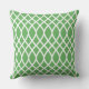Le design carré de coussin d'accents est doté d'un élégant motif de charpente de treillis en diamant ondulé. Les couleurs sont blanches et vert feuille