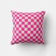 Un motif damier rose et crème recouvre toute l'image, créant une atmosphère vibrante et énergique. Les carrés répétés sont disposés de manière régulière.