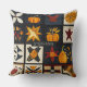 Cet oreiller à jetons est équipé d'un motif patchwork d'inspiration courtepointue disposé dans une grille de carrés foncés et clairs. Chaque bloc met en valeur des motifs uniques, des citrouilles d'appliquer, des feuilles d'automne et des oiseaux à des piquages géométriques tels que les étoiles, les roues et les motifs en damier. Rendu dans des tons chauds d'automne orange, rouge, jaune et marron contre des arrière - plans contrastés crème et bleu foncé, il saisit le charme douillet de la courtepointe artisanale. Idéal pour la décoration rustique des fermes, l'artisanat de saison des récoltes et les amateurs d'art populaire primitif qui aiment le style d'automne.