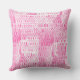 Un motif artistique basé sur un motif en dentelle recouvre cet oreiller de décoration rose vif.