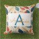 Coussin Motif de feuille dynamique avec nom et monogramme