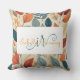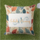 Coussin Motif de feuille dynamique avec nom et monogramme