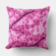 Jeter l'oreiller dans un motif de rose fuchsia profonde, aquarelle, fleurs de cerisiers avec des branches sur un arrière - plan rose pastel