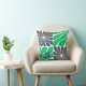 Coussin Motif de fleurs répétées Vert bleu Monogramme Nom