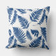 Coussin Motif de fougères de bois, bleu de Cobalt sur blan