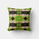 Coussin motif de lézard vert abstrait noir
