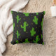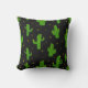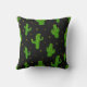 Oreiller noir amusant imprimé de plantes de cactus vertes. Coussin à motif de cactus de dessin animé.