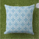 Le coussin élégant dispose d'un motif en quatrefoil marocain moderne décoré en blanc. Customisez l'arrière - plan bleu ciel / poudreuse pour coordonner avec votre décor extérieur.