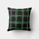 OEuvre d'art numérique originale composée d'un motif carré vintage et rétro retravaillé dans un design de tonalité noir et vert vif avec un style légèrement abstrait de lignes et de formes et d'apparence légèrement déprimée. Les couleurs brillantes font une image étonnante pour ce coussin. L'arrière du coussin est dans le même design, de sorte que les deux côtés peuvent être utilisés. Ces coussins sont de grande qualité en coton, mais vous pouvez choisir d'autres options. Il aurait l'air bien sur le canapé, le canapé, le lit ou les chaises avec un design d'intérieur unique.