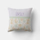 Une coussin avec la moitié inférieure décorée dans un motif amusant illustré de renards adorables, de petits oiseaux mignons et d'arbres blancs. La moitié supérieure est composée d'un arrière - plan lavande violet avec une texture de lin. Le centre est doté d'une bannière vert pastel. Je pense que ce motif pittoresque de style enfant / crèche est vraiment mignon et me rappelle les moments heureux passés dans la nature.