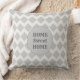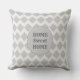 Beau motif diamant géométrique gris sur un fond presque blanc. Le devant de l'oreiller comporte un grand point gris avec le texte : Home Sweet Home.