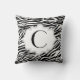 Motif d'impression en zèbre noir personnalisé coussin décoratif de lancer/lancer avec un motif poster de animal et votre texte- monogramme dans un cadre gris. Ce design à la mode, mignon et monogrammé girly est parfait pour une maison de style rétro/vintage ou moderne/contemporain.