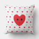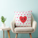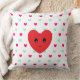 Bleu clair mignon et magenta rouge coeur motif sur blanc Throw Oreiller. Un grand coeur rouge et heureux se trouve à l'avant. L'image du coeur rouge peut être customisée.