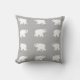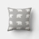 Coussin jeté à motif éléphant blanc sur gris clair.