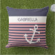 Belle ancre contemporaine de navire, sur un motif classique et chic bleu marine et rose corail clair rayures. Avec espace pour personnaliser ou customiser avec le nom, les initiales ou le monogramme de votre choix sur un arrière - plan de couleur blanche. Créé pour le capitaine, amoureux de la navigation, de la voile, des vacances et des jours ensoleillés d'été sur l'eau ou la plage.