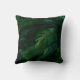 Coussin avec un motif avec de grands feuilles verts dans une forêt tropicale.
