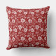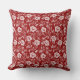 Cet oreiller à lancer présente un motif floral de style baroque en blanc sur rouge.