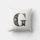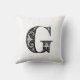 L'oreiller à motif floral noir et blanc à monogramme G initial peut être personnalisé avec une image, un nom, un texte ou une photo. Changez le fond blanc en n'importe quelle nuance de bleu, vert, jaune, orange, rose, rouge, marron et violet. Faire des achats pour les amis et la famille, cet oreiller fait un excellent cadeau pour un anniversaire, une baby shower ou un mariage.