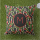Votre monogramme sur un arrière - plan de feuilles tropicaux verts et de plantes de gingembre rouge sur un arrière - plan motif géométrique noir et ivoire, ces coussins sont un bel accent pour votre patio d'été. CORRESPONDRE des articles dans notre magasin.