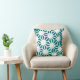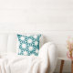 Coussin motif géométrique turquoise et blanc