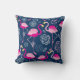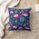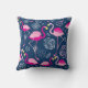 Coussin Motif graphique de flamants roses sur un bleu fonc