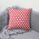 Cet oreiller moderne à jetons en coton présente un motif hexagone géométrique aux couleurs blanc et rouge.