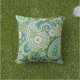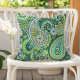 Ce coussin d'extérieur présente un motif paisley audacieux en vert lime et turquoise pour illuminer votre patio, terrasse ou porche.