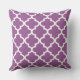 Carré accent design coussin avec un grand design graphique marocain quatrefoil motif. Les couleurs sont le blanc et le violet violet violet.