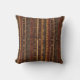 Oreiller à motif rayure géométrique chaud présentant des diamants d'inspiration tribale, des zigzags et des bandes verticales texturées dans des tons terreux marron, terracotta, beige et charbon. Un design bohème cosy idéal pour les amateurs de décoration sud-ouest, les fans de style rustique et tous ceux attirés par l'esthétique terreuse et artisanale.