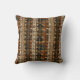 Oreiller à motif rayure géométrique chaud présentant des diamants, des zigzags et des bandes verticales texturées d'inspiration tribale dans des tons terreux marron, terracotta, beige et charbon. Un design bohème cosy idéal pour les amateurs de décoration sud-ouest, les fans de style rustique et tous ceux attirés par l'esthétique terreuse et artisanale.