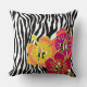 Coussin Motif rayures de zèbre + fleurs d'hibiscus