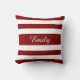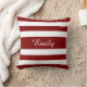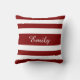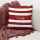 Un élégant minimaliste rouge et blanc audacieux motif projette un oreiller rayé avec un monogramme personnalisable blanc nom imprimé au centre. Personnalisez-le facilement avec votre nom ou votre monogramme en changeant le nom du modèle dans le champ modèle.