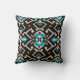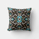 Coussin Motif tribal d'ikat turquoise noir géométrique