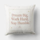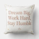 "Transform your workspace or living room with a touch of daily inspiration. This elegant throw pillow features a sleek rose gold typography with the powerful reminder: 'Dream Big, Work Hard, Stay Humble'. Whether you're an entrepreneur looking for office motivation or someone who loves modern minimalist decor, this pillow is the perfect blend of comfort and ambition. High-quality print, soft fabric, and a timeless message that makes it a great gift for graduates or a new home office setup."