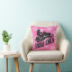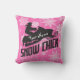 Une silhouette de motoneige lance l'oreiller sur un joli arrière - plan motif de flocon rose. Un cadeau parfait pour la poussette blanche ! Personnalisez avec le nom de votre choix.