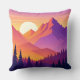Escape to the mountains! Minimalist mountain landscape with peaks, pine trees, and sunset in orange, pink, and purple gradient.