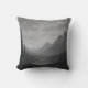 Black and white mountain scene throw pillow with image printed on the front and the back.