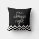 Mme Toujours coussin droite avec chevron noir et blanc. Demande de couleur personnalisée acceptée. Cliquez sur le lien de contact ci-dessus pour m'envoyer un message. M. Right