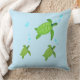 Nager des tortues de mer vertes sur l'oreiller à lancer turquoise.